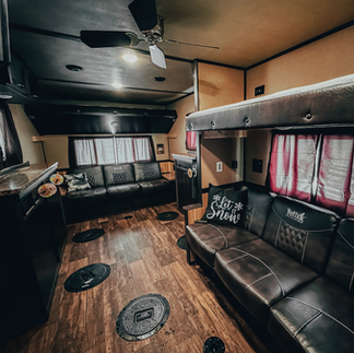 Ice Camp Outfitters offers 14 different ice sleeper cabins, mostly made up of Yetti wheelhouses that have been updated and furnished new again this year. Each "cabin" comes equipped with all the amenities listed on their website, including a heater with propane, a generator with gas, a 4k TV with dish network subscription, a Bluetooth sound system, a 5g cell phone booster, a 3 burner stove & oven, basic cooking pots & pans, a spatula & spoon, a Coleman pour-over coffee maker, paper towels and toilet paper, hand sanitizer, LED lighting, bunk beds, CO2 & smoke alarms, a fire extinguisher, an ice scoop, and a fish ruler.